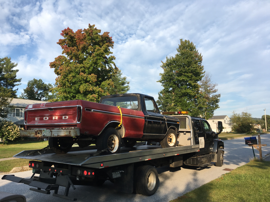 I replaced the bed with a better one I had shipped from Kansas (used Fastenal's 3PL shipping for this - huge savings) and had to get it towed home before the adventure could start.